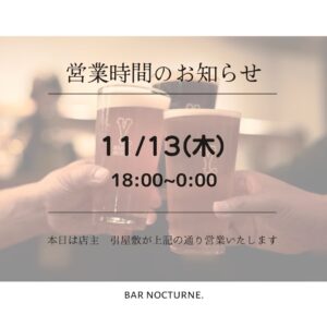 本日は店主・引屋敷が19:00~0:00まで営業いたします。