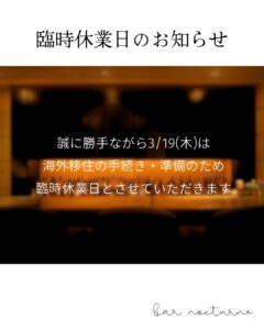誠に勝手ながら本日の営業は私用のため店休とさせていただきます。