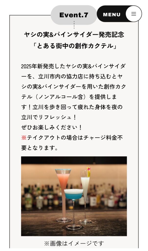 立川市内で販売する«ヤシの実 & パインサイダー»を使った創作カクテルの提供🍹✨️