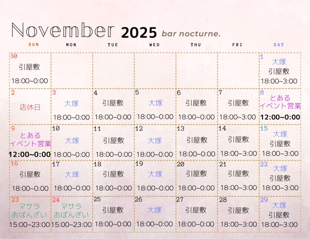 11/2(日)【11月の営業予定】