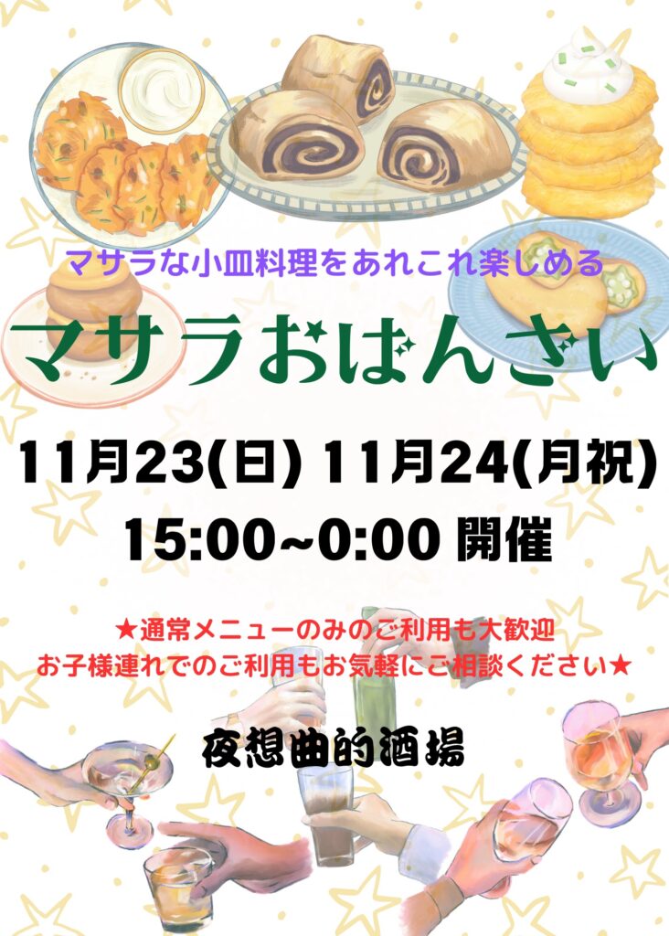 スパイス料理を小皿サイズにて提供するイベント「マサラおばんざいの日」として営業いたします。