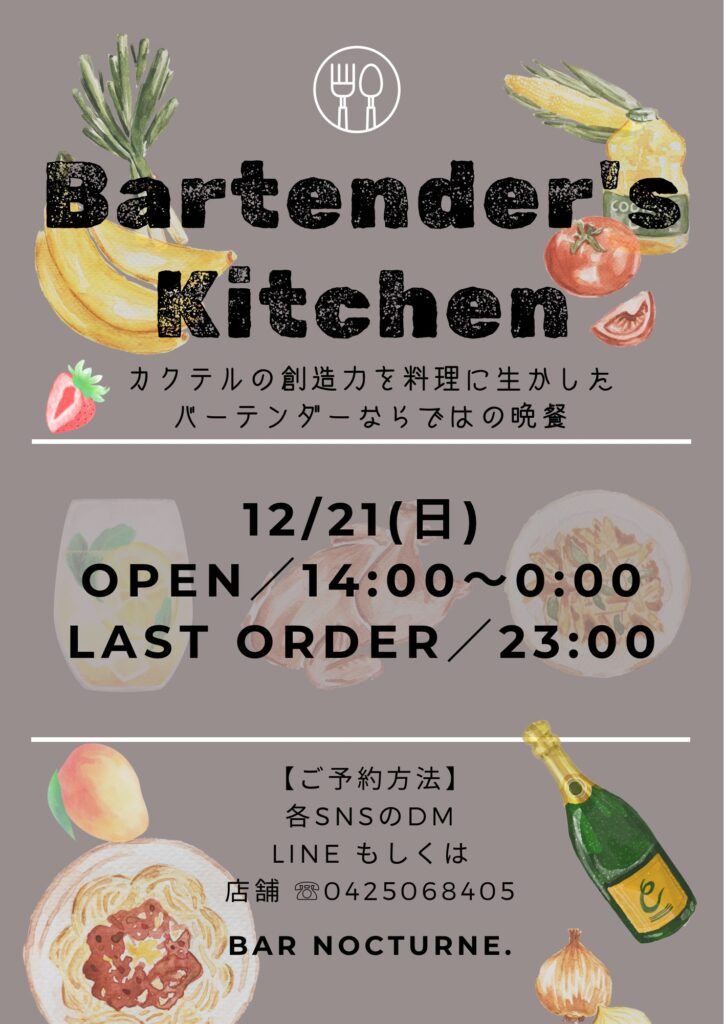 12/15(月)【Bartender’s Kitchenのご案内】