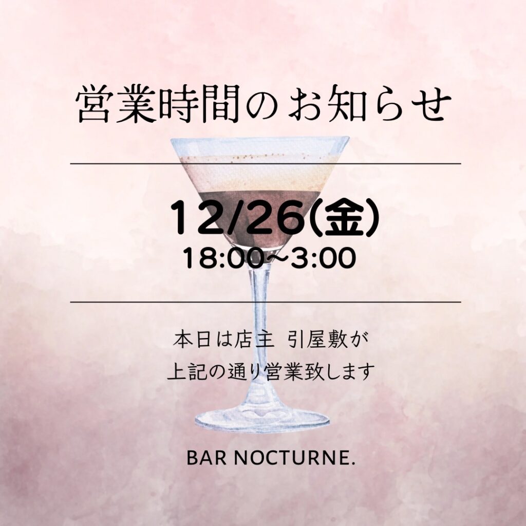 12/26(金)【営業時間のお知らせ】引屋敷 18:00~3:00