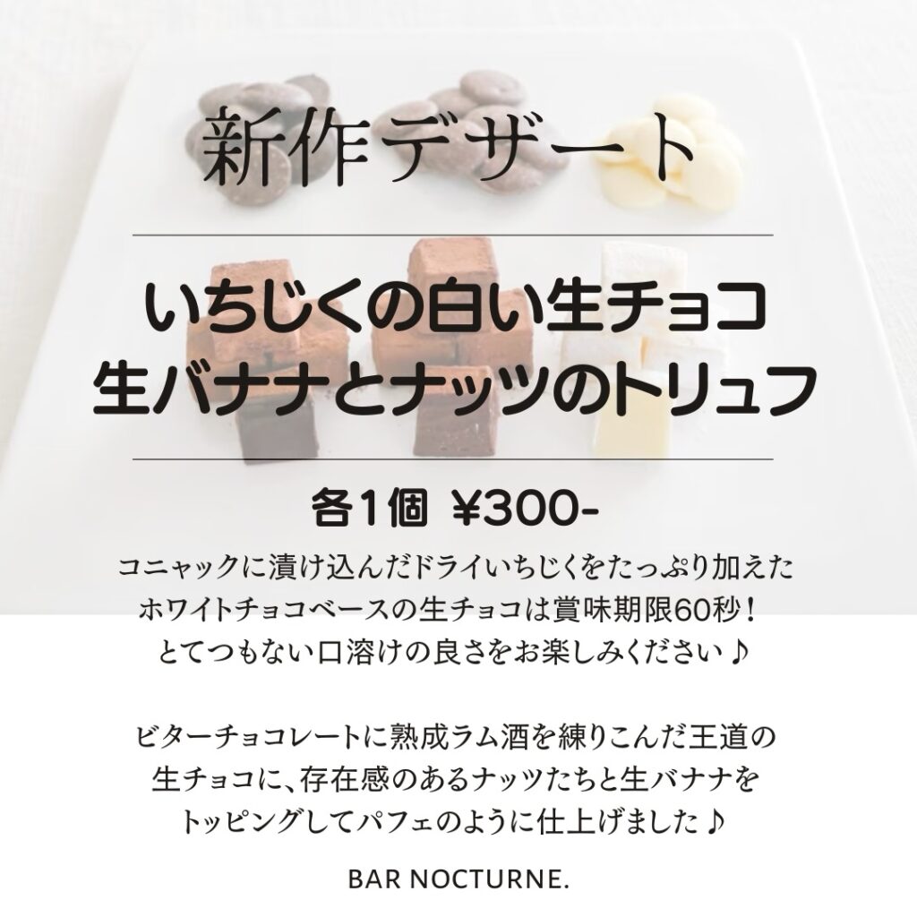 白黒2種類の生チョコトリュフをご案内です。