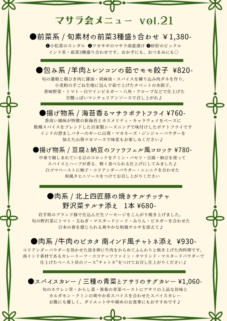 これで21回目、ラスト2となったマサラ会を2日間開催いたします🍛