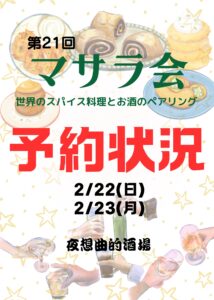 2/22(日)~2/23(月) 第21回 マサラ会 開催中(12:00~23:00)