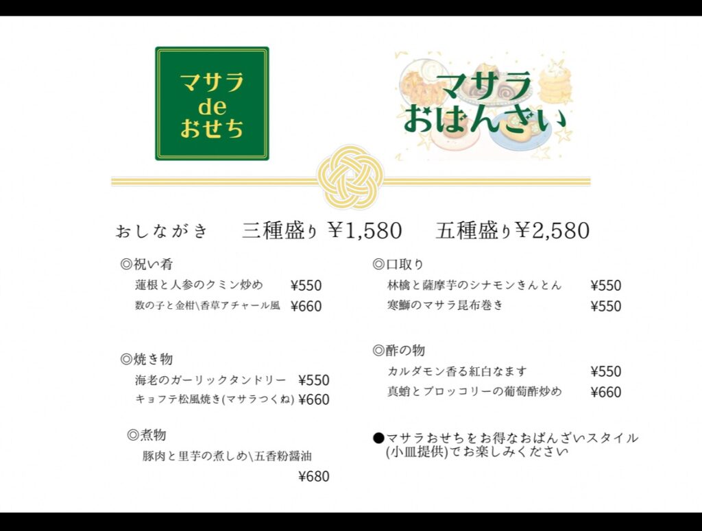 1/2(金)【マサラおせち小皿提供します】営業時間15:00~23:00